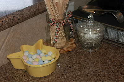i already had the bushel baskets (from hobby lobby, i think) and i thought they worked for the bottom shelf with things like, bananas, onions, root vegetables, crackers, bags of different coffees, and random bags of dried beans. if i used dried beans a lot…i would put them in a jar…but i don’t. so…i thought they would be better stored like this.