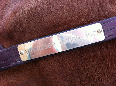 he is an official anheuser busch clydesdale.