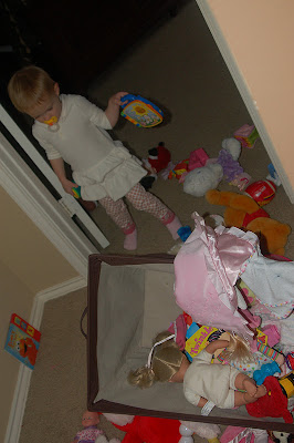 annslee actually played with…wait for it…toys the other day.  this girl would much rather be getting into stuff and meandering around the house then playing with toys.  but…low and behold…while i was dealing with cat piss laundry the other day…i heard a little ruckus from the hall.  and this is what i found.